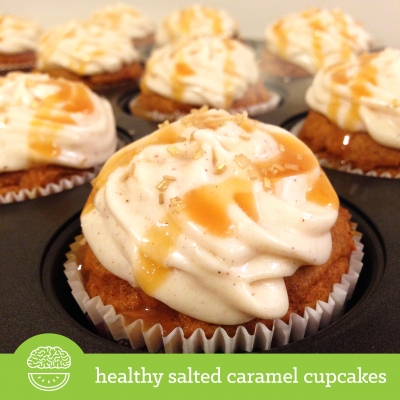 OH. MY. GOSH. These Salted Caramel Pumpkin Cupcakes are seriously THEBESTTHINGEVER. They’re the perfect healthier bite of fall without sacrificing even a pinch of flavor!
