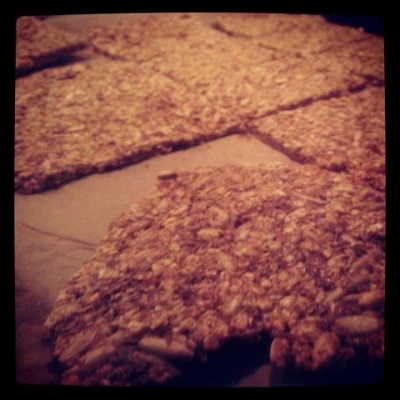 Mix all the dry ingredients in a god size bowl. add 4 eggs and 2-3 dl of water. The dough can not be to wet, try to make it a god sticky consistence. Split the dough parts in two big oven pans. remember baking paper. Use a extra piece of paper to push the dough evenly out in the pan. Make it as thin an possible, like a pizza! Use a kitchen tool to make the edges nice and straight as possible put the pan in the middle of the oven, 180 C, 10 minutes. Remember to cut it up in nice squares,serving sizes just after coming out of the oven! It gets harder when its cold but you can enjoy it hot also. Put on some nice imposition, ENJOY!