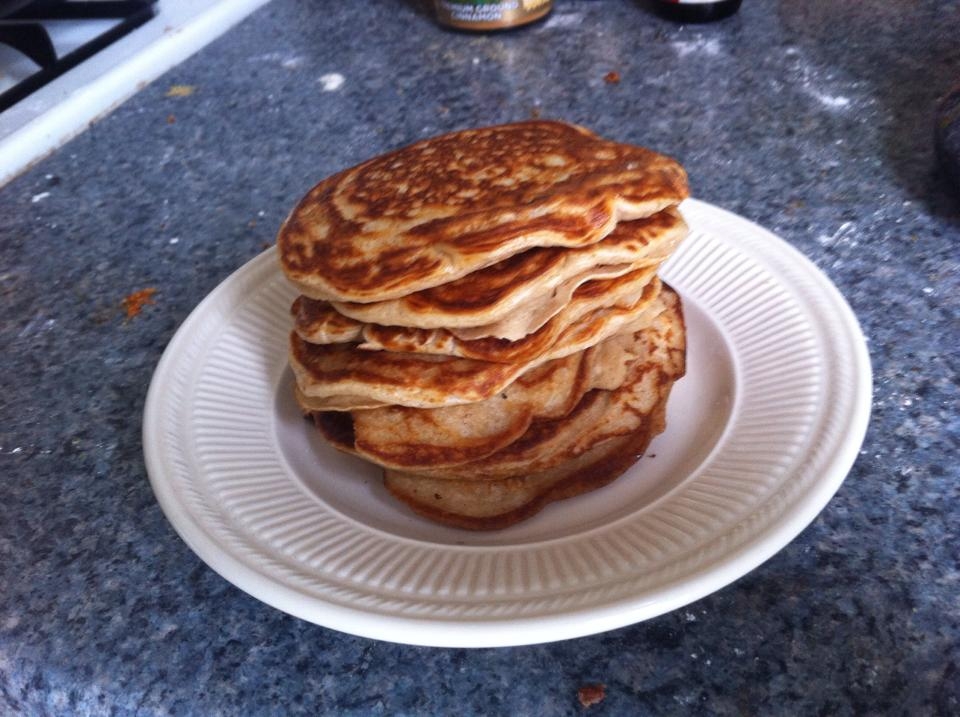 Combine dry ingredients. Whisk wet ingredients, pour into dry mixture, and stir just until combined. Over medium heat scoop a heaping tbsp onto skillet per pancake. Flip when bubbles appear. Cook until golden brown.